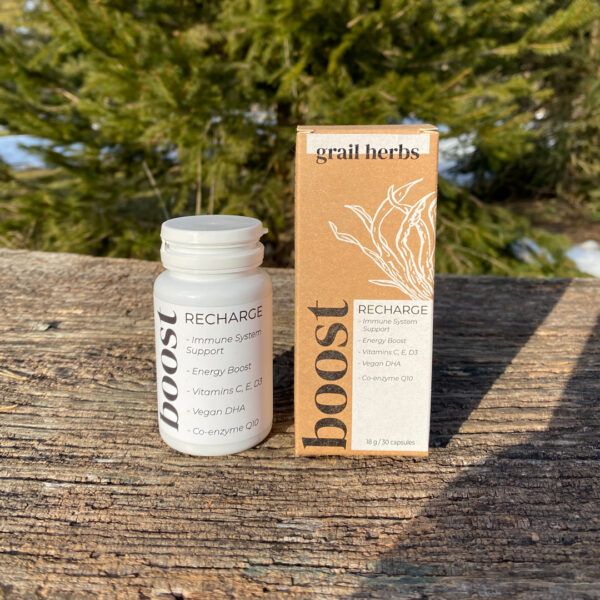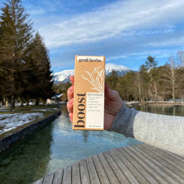 Imuno in energy Boost smo zasnovali z namenom izboljšanja imunskega sistema, energetskega potenciala, hkrati pa za zaščito celic pred oksidativnim stresom. Močnejši in bolj zdrav imunski sistem daje telesu tisto, kar potrebuje, da se kar najbolje bori z vsakodnevnimi izzivi. Glavne komponente izdelka so vitamini C, E in D3, Omega 3 – DHK (dokozaheksaenojska kislina), pridobljena iz mikroalge ter koencim Q10.